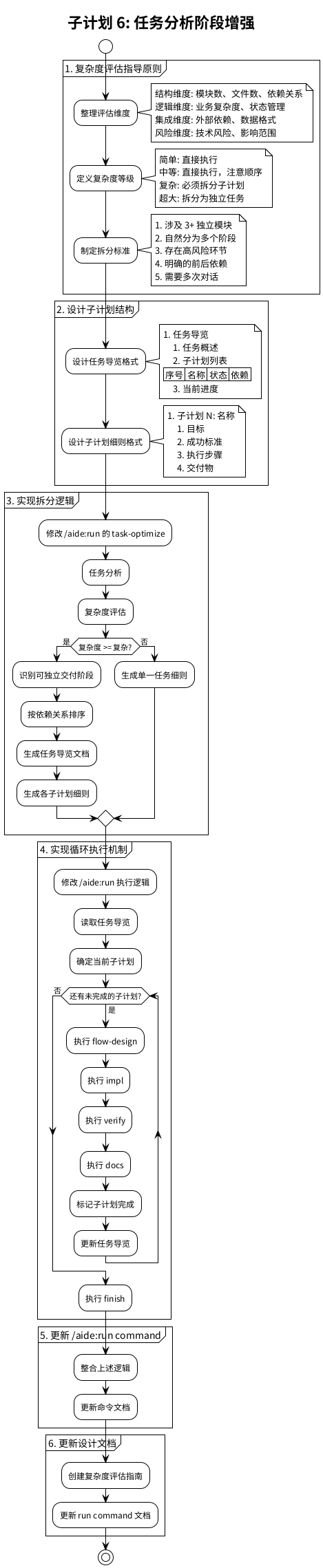 [aide] flow-design: 流程图设计完成: 1个总体流程图 + 6个子计划流程图