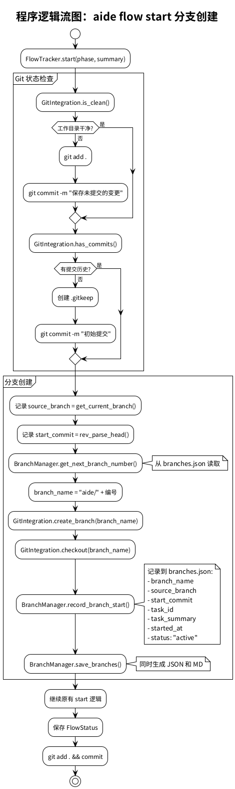 [aide] impl: 流程设计完成,开始实现子计划1:Git分支管理核心功能